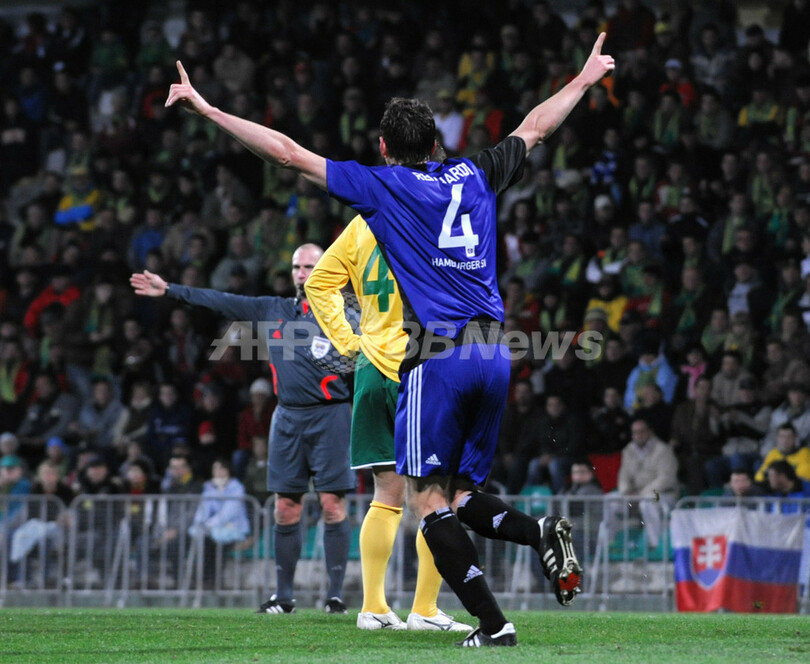 スポーツ サッカー ハンブルガーSV アウェーでMSKジリナ下す 2008年10月24日 8:09 発信地:ジリナ/スロバキア [ ヨーロッパ スロバキア ] このニュースをシェア ‹ › ❮ 1/4 ❯ 前半ロスタイム、イビカ・オリッチ (%%Ivica Olic%%、写真外)のゴールに歓喜するハンブルガーSVのバスティアン・ラインハルト(%%Bastian Reinhardt%%)。(2008年10月23日撮影)(c)AFP/JOE KLAMAR 画像作成中 ! 【10月24日 AFP】サッカーUEFA杯2008-09(UEFA Cup 2008-09)グループリーグF第1節、MSKジリナ(MSK Zilina)対ハンブルガーSV(Hamburger SV)。試合はハンブルガーSVがMSKジリナに2-1で逃げ切り勝利を飾った。(c)AFP サッカー 一覧へ> メディア・報道関係・法人の方向け 写真・動画 購入のお問合せ>