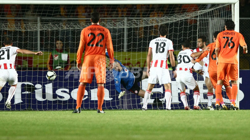 スポーツ サッカー ガラタサライ ホームで初戦を飾る 2008年10月24日 9:01 発信地:イスタンブール/トルコ [ 中東・北アフリカ トルコ ] このニュースをシェア ‹ › ❮ 4/11 ❯ 前半25分、ガラタサライのハリー・キューウェル(%%Harry Kewell%%、写真外)に先制点を奪われるオリンピアコスの守備陣。(2008年10月23日撮影)(c)AFP/BULENT KILIC 画像作成中 ! 【10月24日 AFP】サッカーUEFA杯2008-09(UEFA Cup 2008-09)グループリーグB第1節、ガラタサライ(Galatasaray)対オリンピアコス(Olympiacos FC)。試合はガラタサライが1-0でオリンピアコスを下し、初戦で白星を飾った。(c)AFP サッカー 一覧へ> メディア・報道関係・法人の方向け 写真・動画 購入のお問合せ>