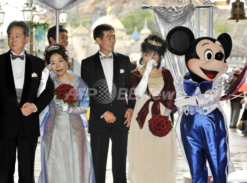 ニュース ライフ ミッキーたちと銀婚式、東京ディズニーシー 2008年10月24日 20:56 発信地:千葉 [ アジア・オセアニア 千葉 ] このニュースをシェア ‹ › ❮ 4/4 ❯ 千葉県浦安市の東京ディズニーシー(Tokyo Disneysea)でミッキーマウス(Mickey Mouse)に銀婚式の祝福を受ける夫婦(2008年10月24日撮影)。(c)AFP/Yoshikazu TSUNO 画像作成中 ! 【10月24日 AFP】千葉県浦安市の東京ディズニーシー(Tokyo Disneysea)で24日、東京ディズニーリゾート開園25周年を記念して、全国から応募した700組から抽選で選ばれた6組の夫婦の銀婚式が行われた。(c)AFP ライフ 一覧へ> メディア・報道関係・法人の方向け 写真・動画 購入のお問合せ>
