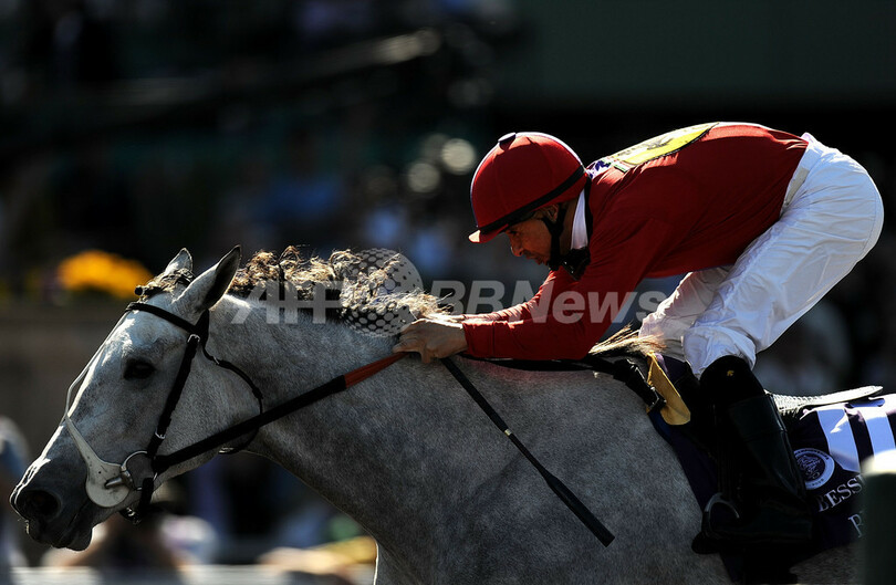 【10月25日 AFP】競馬、08ブリーダーズカップ・ワールド・チャンピオンシップ(2008 Breeders’Cup World Championships)ジュヴェナイルフィリーズ。スターダムバウンド(Stardom Bound)が、賞金総額200万ドル(約1億9000万円)のレースを見事に制した。マイク・スミス(Mike Smith)騎手が騎乗するスターダムバウンドは、後方から簡単に追い上げ、ドリームエンプレス(Dream Empress)に1と1/2馬身差をつけて勝利した。(c)AFP