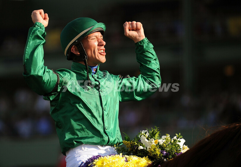 また、2着にはジョン・ベラスケス(John Velazquez)騎乗のヘンリーザナヴィゲーター(Henrythenavigator、エイダン・オブライエン(Aidan O’Brien)調教師)が、3着にはマイク・スミス(Mike Smith)騎乗のティアゴ(Tiago、ジョン・シレッフス(John Shirreffs)調教師)が入った。(c)AFP