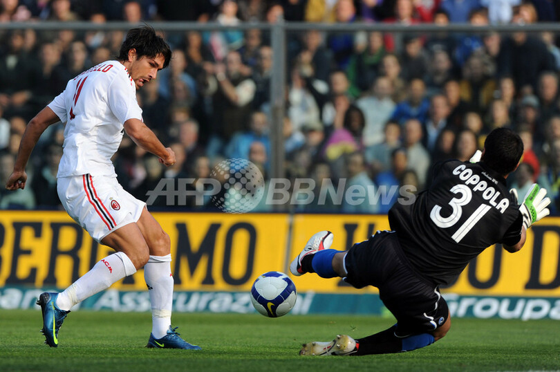 スポーツ サッカー ミラン アタランタ下し4位に 2008年10月27日 7:50 発信地:ローマ/イタリア [ ヨーロッパ イタリア ] このニュースをシェア ‹ › ❮ 13/14 ❯ 後半35分にアタランタのフェルディナンド・コッポラ(%%Ferdinando Coppola%%)から決勝点を奪うACミランのカカ(左)。(2008年10月26日撮影)(c)AFP/GIUSEPPE CACACE 画像作成中 ! 【10月27日 AFP】08-09イタリア・セリエA第8節、アタランタ(Atalanta)対ACミラン(AC Milan)。試合は後半35分にカカ(Kaka)がゴールを決めてミランが1-0で勝利を収め、ミランは首位と勝ち点差1に迫り4位に浮上した。(c)AFP/Barnaby Chesterman サッカー 一覧へ> メディア・報道関係・法人の方向け 写真・動画 購入のお問合せ>