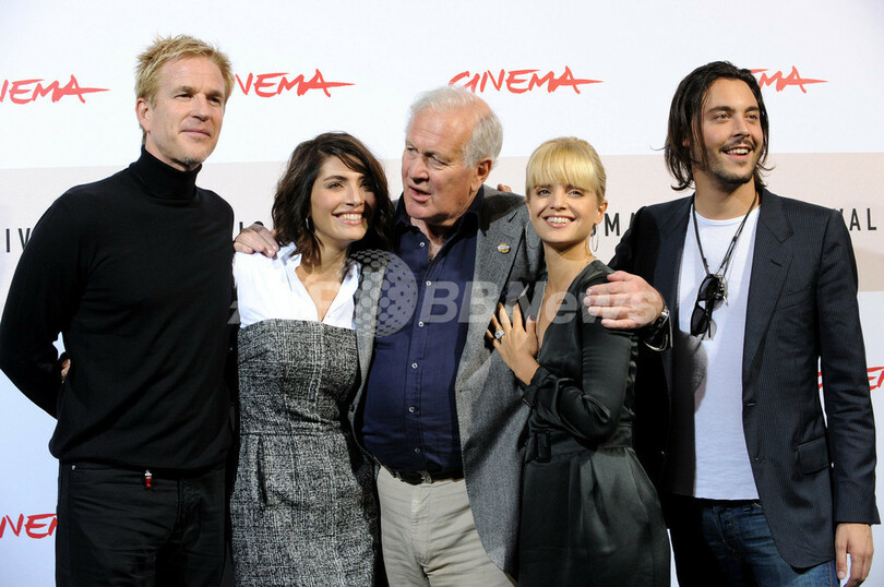ローマ映画祭(Rome Film Festival)で、『The garden of Eden』のフォトコールに登場した(左から)米俳優のマシュー・モディーン(Matthew Modine)、女優のカテリーナ・ムリーノ(Caterina Murino)、ジョン・アーヴィン(John Irvin)監督、女優のミーナ・スヴァーリ(Mena Suvari)、俳優のジャック・ヒューストン(Jack Huston、2008年10月26日撮影)。(c)AFP/Tiziana Fabi