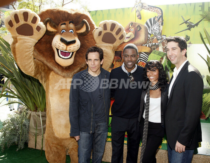 【10月27日 AFP】ドリームワークス(Dreamworks)製作のアニメ映画『マダガスカル(Madagascar)』の続編『Madagascar: Escape 2 Africa』のプレミア上映会が26日、米カリフォルニア(California)州ロサンゼルス(Los Angeles)のマン・ビレッジ・シアター(Mann Village Theatre)で開催され、声優を務めた俳優のベン・スティラー(Ben Stiller)らが登場した。(c)AFP/Getty Images