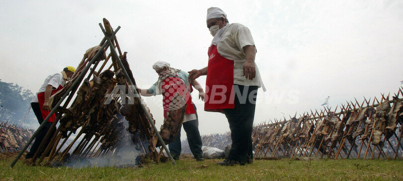 ニュース ライフ 8時間で22トンの豚肉食べたバーベキュー大会、パラグアイ 2008年10月28日 12:38 発信地:アスンシオン/パラグアイ [ 中南米 パラグアイ ] このニュースをシェア ‹ › ❮ 13/21 ❯ パラグアイの首都アスンシオン(Asuncion)近郊で開かれた白血病患者らを支援するバーベキュー大会(2008年10月26日撮影)。(c)AFP/Jorge Romero 画像作成中 ! 【10月28日 AFP】パラグアイの首都アスンシオン(Asuncion)近郊で26日、白血病に苦しむ子どもたちや虐待を受けた女性たちを支援するバーベキュー大会が催された。8時間以内に22トンの豚肉が消費され、ギネス世界記録(Guinness Book of Records)を達成した。(c)AFP ライフ 一覧へ> メディア・報道関係・法人の方向け 写真・動画 購入のお問合せ>