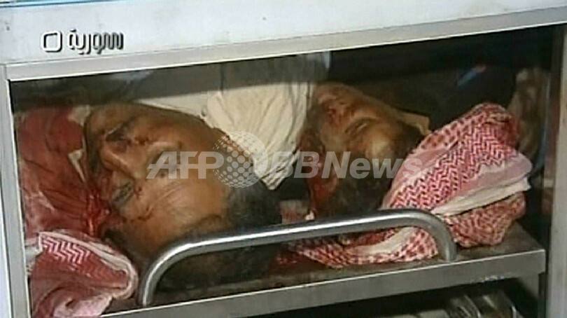 シリアのテレビ局が放映した前日のイラク駐留米軍による越境攻撃で殺害されたシリア民間人の遺体(2008年10月27日撮影)。(c)AFP/SYRIAN TV