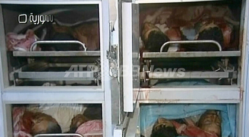 シリアのテレビ局が放映した前日のイラク駐留米軍による越境攻撃で殺害されたシリア民間人の遺体(2008年10月27日撮影)。(c)AFP/SYRIAN TV