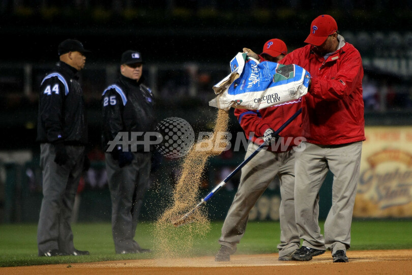 【10月28日 AFP】(記事更新)08MLBワールドシリーズ、フィラデルフィア・フィリーズ(Philadelphia Phillies)対タンパベイ・レイズ(Tampa Bay Rays)第5戦。試合は6回表を終えて2-2の同点で降雨によりサスペンデッドとなった。同シリーズ史上で試合がサスペンデッドになったのは初めて。
