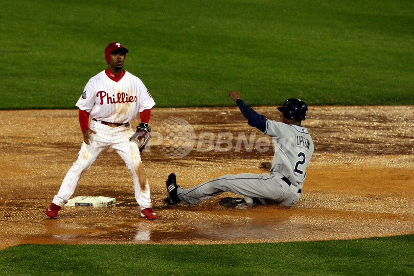 【10月28日 AFP】(記事更新)08MLBワールドシリーズ、フィラデルフィア・フィリーズ(Philadelphia Phillies)対タンパベイ・レイズ(Tampa Bay Rays)第5戦。試合は6回表を終えて2-2の同点で降雨によりサスペンデッドとなった。同シリーズ史上で試合がサスペンデッドになったのは初めて。