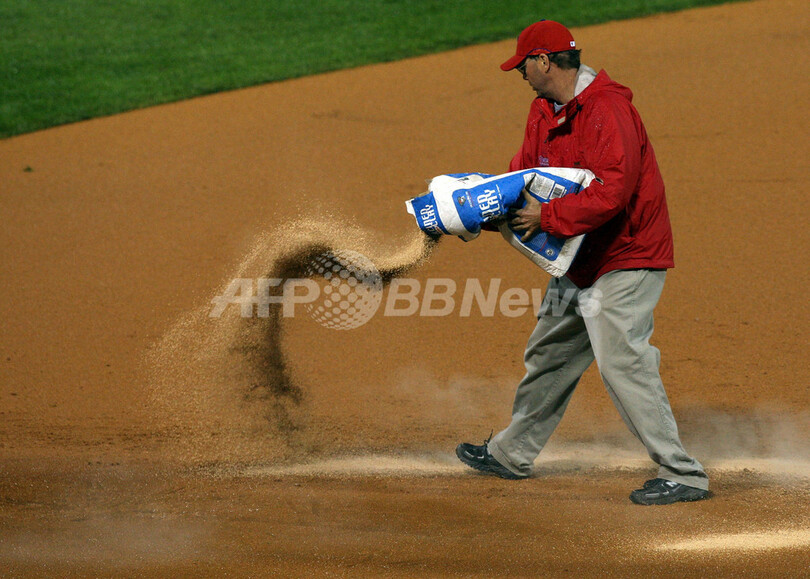 【10月28日 AFP】(記事更新)08MLBワールドシリーズ、フィラデルフィア・フィリーズ(Philadelphia Phillies)対タンパベイ・レイズ(Tampa Bay Rays)第5戦。試合は6回表を終えて2-2の同点で降雨によりサスペンデッドとなった。同シリーズ史上で試合がサスペンデッドになったのは初めて。