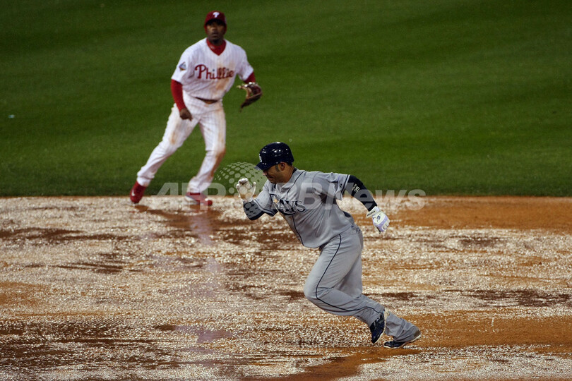 【10月28日 AFP】(記事更新)08MLBワールドシリーズ、フィラデルフィア・フィリーズ(Philadelphia Phillies)対タンパベイ・レイズ(Tampa Bay Rays)第5戦。試合は6回表を終えて2-2の同点で降雨によりサスペンデッドとなった。同シリーズ史上で試合がサスペンデッドになったのは初めて。