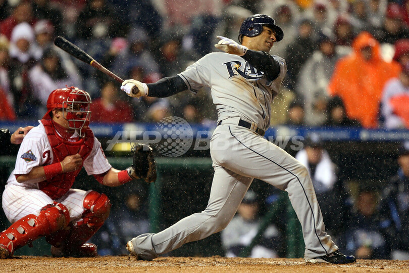 【10月28日 AFP】(記事更新)08MLBワールドシリーズ、フィラデルフィア・フィリーズ(Philadelphia Phillies)対タンパベイ・レイズ(Tampa Bay Rays)第5戦。試合は6回表を終えて2-2の同点で降雨によりサスペンデッドとなった。同シリーズ史上で試合がサスペンデッドになったのは初めて。