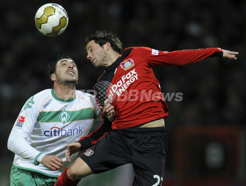 【10月29日 AFP】08-09ドイツ・ブンデスリーガ1部第10節、ヴェルダー・ブレーメン(Werder Bremen)対バイヤー・レバークーゼン(Bayer Leverkusen)。試合はレバークーゼンが2-0でブレーメンを破り、暫定ながら首位に立った。