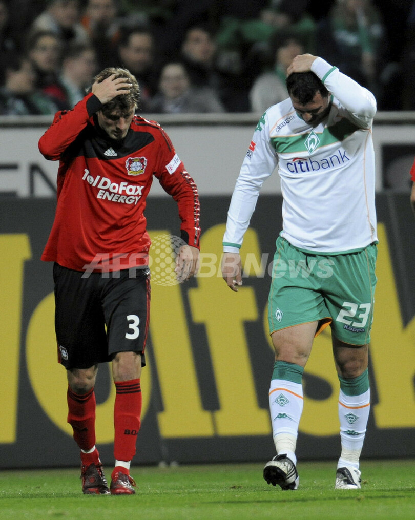 【10月29日 AFP】08-09ドイツ・ブンデスリーガ1部第10節、ヴェルダー・ブレーメン(Werder Bremen)対バイヤー・レバークーゼン(Bayer Leverkusen)。試合はレバークーゼンが2-0でブレーメンを破り、暫定ながら首位に立った。