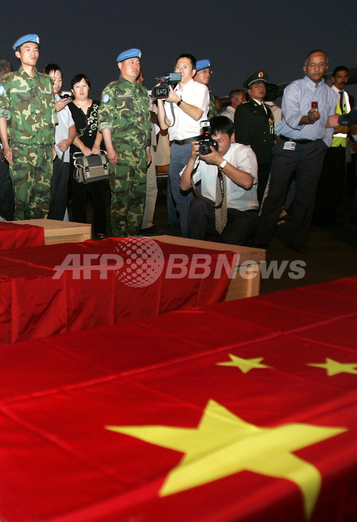 【10月29日 AFP】スーダン南部で今月18日、石油関連企業の中国人作業員9人が拉致されていた事件で、この作業員のうち3人の遺体と負傷した3人が28日、スーダンの首都ハルツーム(Khartoum)に到着した。同地では、遺体の本国送還を前に、国連(UN)の平和維持活動で同国に展開している中国軍によって軍葬が執り行なわれた。