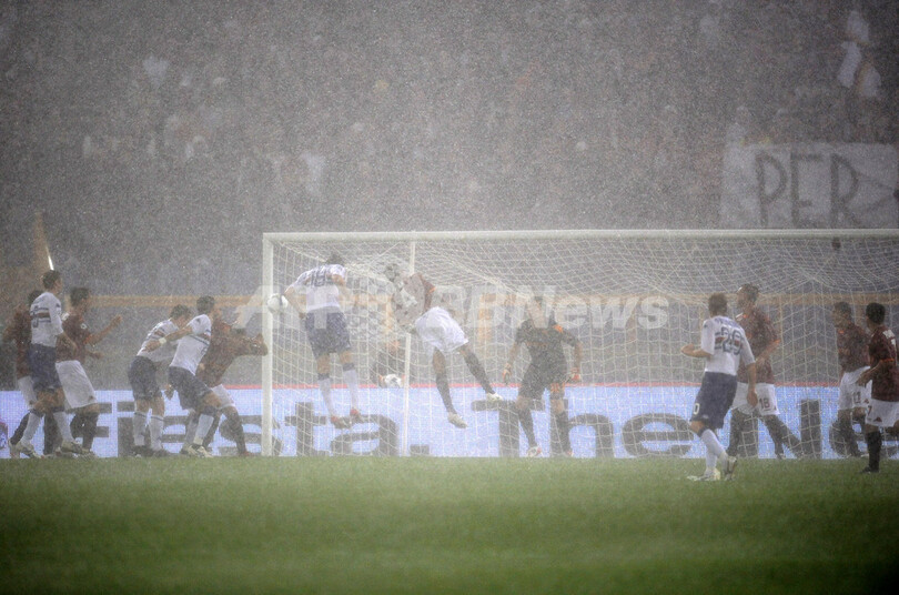 スポーツ サッカー ASローマ対サンプドリア戦は豪雨のため延期に 2008年10月30日 7:55 発信地:ローマ/イタリア [ ヨーロッパ イタリア ] このニュースをシェア ‹ › ❮ 3/8 ❯ 豪雨中プレーする両チームの選手。(2008年10月29日撮影)(c)AFP/Filippo MONTEFORTE 画像作成中 ! 【10月30日 AFP】08-09イタリア・セリエA第9節、ASローマ(AS Roma)対サンプドリア(Sampdoria)。試合は、豪雨の為試合開始6分の時点で延期となった。 試合は開始後にまず一時中断となったものの、稲妻と豪雨の為その30分後に延期が決定された。主審が両チームの主将と話し合い、ボールが転がらないピッチの状況の為延期を宣告した。(c)AFP サッカー 一覧へ> メディア・報道関係・法人の方向け 写真・動画 購入のお問合せ>