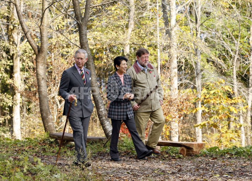 【10月30日 AFP】来日中のチャールズ英皇太子(Prince Charles)は30日、英国出身の作家、C・W・ニコル(Clive Williams Nicol)さんの財団が所有する長野県上水内郡信濃町の「アファンの森( Afan Forest)」を視察した。「アファンの森」は「C・W・ニコル・アファンの森財団(C.W Nicol Afan Woodland Trust)」が、荒廃した長野県の里山を少しずつ買い取り森として再生させた。