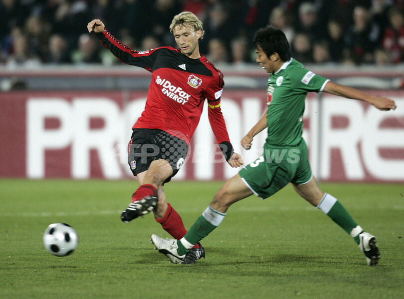 スポーツ サッカー レバークーゼン ボルフスブルク下し4連勝 2008年11月1日 9:09 発信地:レバークーゼン/ドイツ [ ヨーロッパ ドイツ ] このニュースをシェア ‹ › ❮ 6/6 ❯ VfLボルフスブルクの長谷部誠(%%Makoto Hasebe%%、右)のチェックをかわすバイヤー・レバークーゼンのシモン・ロルフェス(%%Simon Rolfes%%)。(2008年10月31日撮影)(c)AFP/DDP/JUERGEN SCHWARZ 画像作成中 ! 【11月1日 AFP】08-09ドイツ・ブンデスリーガ1部第11節、バイヤー・レバークーゼン(Bayer Leverkusen)対VfLボルフスブルク(VfL Wolfsburg)。試合はレバークーゼンが2-0で勝利し、連勝を4に伸ばした。(c)AFP サッカー 一覧へ> メディア・報道関係・法人の方向け 写真・動画 購入のお問合せ>