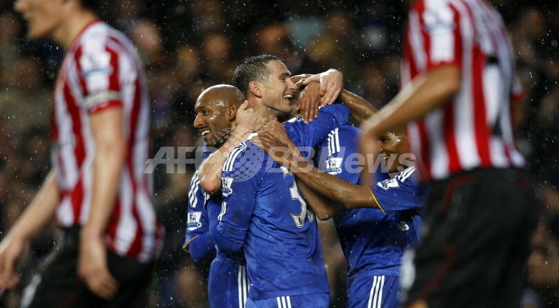 【11月2日 AFP】08-09イングランド・プレミアリーグ、チェルシー(Chelsea)対サンダーランド(Sunderland AFC)。チェルシーは5-0でサンダーランドに快勝し、リバプール(Liverpool FC)が敗れたため再び首位に浮上した。