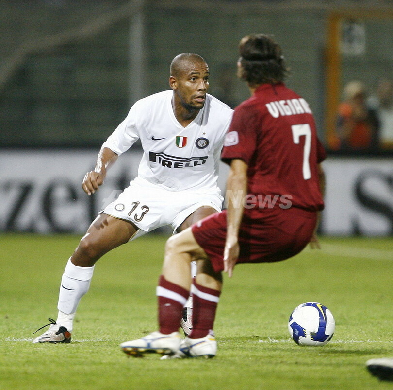 ダグラス・マイコン(Douglas Maicon)、パトリック・ビエラ(Patrick Vieira)のゴールで前半24分までに2点のリードを奪ったインテルは、その後レッジーナに2-2の同点に追い着かれるも、迎えた後半ロスタイムにイバン・コルドバ(Ivan Ramiro Cordoba)が決勝点となるゴールを決め、ジョゼ・モウリーニョ(Jose Mourinho)監督を喜ばせた。(c)AFP/Barnaby Chesterman