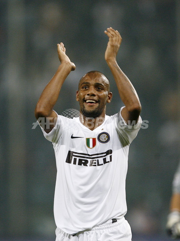 ダグラス・マイコン(Douglas Maicon)、パトリック・ビエラ(Patrick Vieira)のゴールで前半24分までに2点のリードを奪ったインテルは、その後レッジーナに2-2の同点に追い着かれるも、迎えた後半ロスタイムにイバン・コルドバ(Ivan Ramiro Cordoba)が決勝点となるゴールを決め、ジョゼ・モウリーニョ(Jose Mourinho)監督を喜ばせた。(c)AFP/Barnaby Chesterman