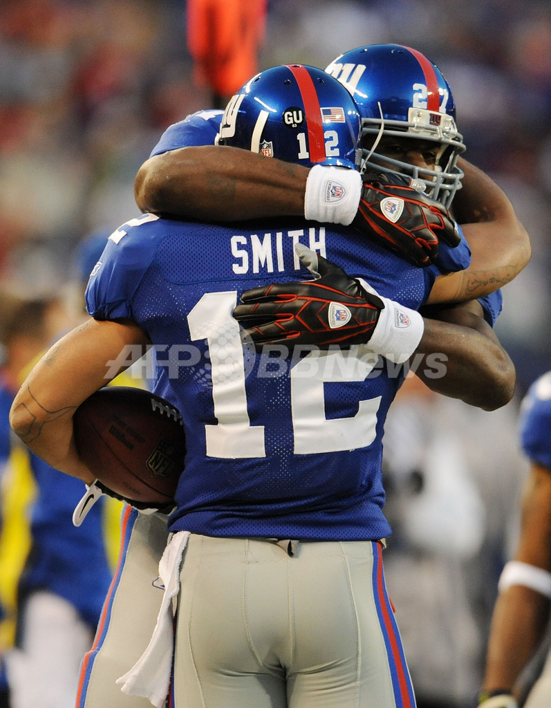 スポーツ アメリカンフットボール ジャイアンツ カウボーイズに快勝し3連勝 2008年11月3日 12:59 発信地:イーストラザフォード/米国 [ 北米 米国 ] このニュースをシェア ‹ › ❮ 9/10 ❯ ダラス・カウボーイズ戦で第1クォーターに5ヤードのタッチダウンレシーブを決め、チームメイトのブランドン・ジェイコブス(%%Brandon Jacobs%%、右)から祝福を受けるニューヨーク・ジャイアンツのスティーブ・スミス(%%Steve Smith%%)。(2008年11月2日撮影)(c)AFP/Getty Images/Al Bello 画像作成中 ! 【11月3日 AFP】08NFL・第9週、ニューヨーク・ジャイアンツ(New York Giants)対ダラス・カウボーイズ(Dallas Cowboys)。試合はジャイアンツが35-14でカウボーイズに快勝し、ジャイアンツは3連勝を飾った。(c)AFP/Getty Images アメリカンフットボール 一覧へ> メディア・報道関係・法人の方向け 写真・動画 購入のお問合せ>