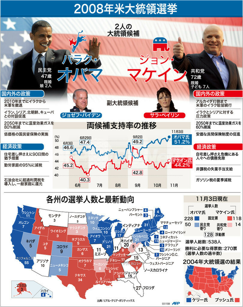 ニュース 政治・経済 図解 【図解】2008年米大統領選挙の概略 2008年11月4日 13:56 発信地:米国 [ 北米 米国 ] このニュースをシェア (c)AFP 【11月4日 AFP】図は、2008年米大統領選挙の概略を示したもの。(c)AFP<ニュース解説画像一覧へ> 政治・経済 一覧へ> メディア・報道関係・法人の方向け 写真・動画 購入のお問合せ>