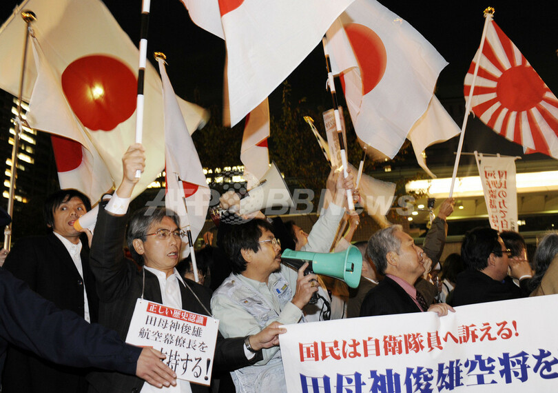 【11月4日 AFP】過去の戦争で日本は侵略国家ではなかったとする論文を民間企業の懸賞論文に発表したとして、更迭された田母神俊雄(Toshio Tamogami)前航空幕僚長は3日夜、東京都内で記者会見し、「政府見解に対しひとことも言えないようでは、民主主義の国とは言えない。北朝鮮と一緒だ」と述べた。田母神氏は3日付で定年退職となった。