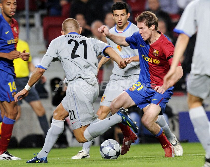 【11月5日 AFP】(記事更新、写真追加)サッカー欧州チャンピオンズリーグ2008-09(UEFA Champions League 2008-09)グループリーグC第4節、FCバルセロナ(FC Barcelona)対FCバーゼル(FC Basel)。試合は1-1の引き分けに終わり、バルセロナは勝ち点を10に伸ばし決勝トーナメント進出を決めた。