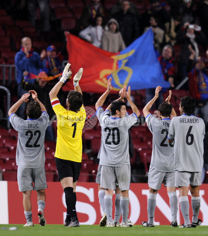 【11月5日 AFP】(記事更新、写真追加)サッカー欧州チャンピオンズリーグ2008-09(UEFA Champions League 2008-09)グループリーグC第4節、FCバルセロナ(FC Barcelona)対FCバーゼル(FC Basel)。試合は1-1の引き分けに終わり、バルセロナは勝ち点を10に伸ばし決勝トーナメント進出を決めた。