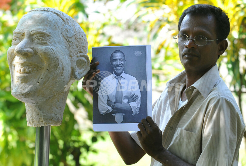 ニュース ライフ スリランカの芸術家、オバマ氏頭像を制作 2008年11月6日 12:03 発信地:コロンボ/スリランカ [ アジア・オセアニア スリランカ ] このニュースをシェア ‹ › ❮ 2/2 ❯ スリランカのコロンボ(Colombo)で、米次期大統領に決まったバラク・オバマ(Barack Obama)上院議員の頭像と制作の参考にした写真を見せるスリランカの芸術家、ウパリ・ディアス(Upali Dias)さん(2008年11月4日撮影)。(c)AFP/Lakruwan WANNIARACHCHI 画像作成中 ! 【11月6日 AFP】米次期大統領に当選したバラク・オバマ(Barack Obama)上院議員の頭像に最後の仕上げを施すスリランカの芸術家、ウパリ・ディアス(Upali Dias)さん。ディアスさんは、選挙活動中のオバマ氏の写真をいくつか参考にして、この像を制作をした。(c)AFP ライフ 一覧へ> メディア・報道関係・法人の方向け 写真・動画 購入のお問合せ>