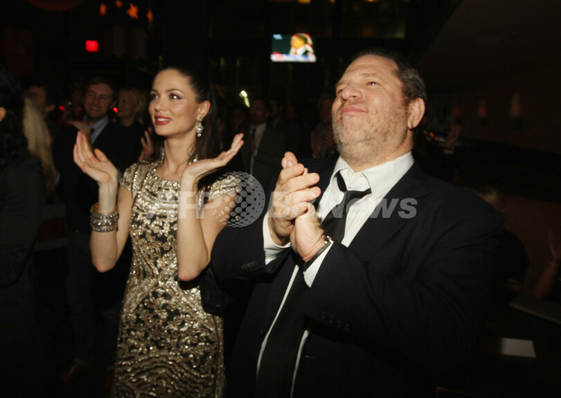 米大統領選挙のパーティー「Bipartisan Election Night Party」に出席する、女優ジョージナ・チャップマン(Georgina Chapman、左)と、映画プロデューサーのハーヴェイ・ワインスタイン(Harvey Weinstein、2008年11月4日撮影)。(c)AFP/Getty Images/Stephen Lovekin