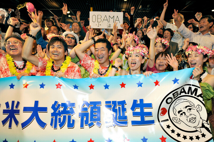 ニュース 政治・経済 こぼれ話 <08米大統領選挙>小浜市民、オバマ氏当選祝う 2008年11月5日 17:58 発信地:福井 [ アジア・オセアニア 福井 ] このニュースをシェア ‹ › ❮ 1/7 ❯ 福井県小浜(Obama)市で米民主党大統領候補バラク・オバマ(Barack Obama)上院議員の当選を祝う地元住民ら(2008年11月5日撮影)。(c)AFP/Toru YAMANAKA 画像作成中 ! 【11月5日 AFP】4日の米大統領選は即日開票の結果、民主党のバラク・オバマ(Barack Obama)上院議員が勝利し、名前の発音が同じことからオバマ氏を応援してきた福井県小浜(Obama)市では5日、地元主婦らがフラダンスを披露するなどして新大統領の誕生を祝った。(c)AFP 政治・経済 一覧へ> メディア・報道関係・法人の方向け 写真・動画 購入のお問合せ>