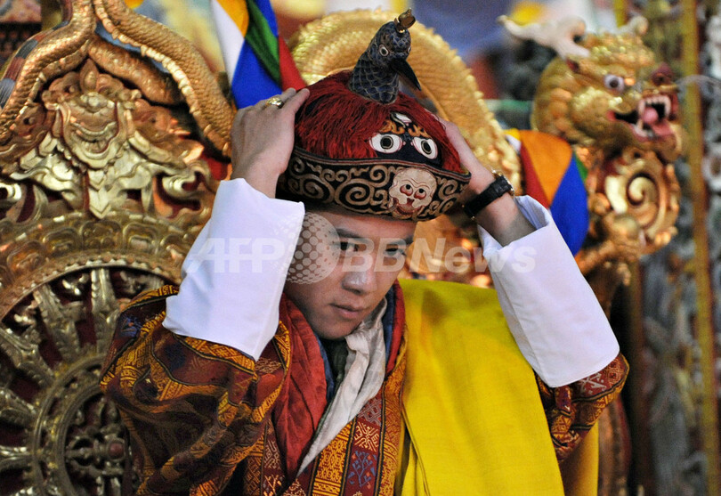 国王としては、王国から立憲君主国への移行後初で、また世界最年少となる。同国王は英オックスフォード大学(Oxford University)への留学経験も持つ。戴冠式は、国王の執務室と行政府、ブータン仏教の本山があるタシチョ・ゾン(Tashichho Dzong)で行われた。(c)AFP