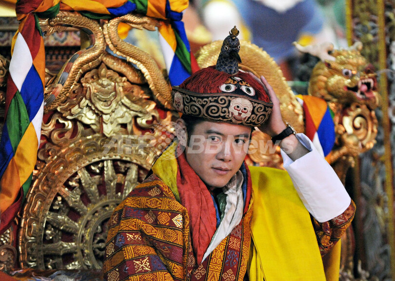 国王としては、王国から立憲君主国への移行後初で、また世界最年少となる。同国王は英オックスフォード大学(Oxford University)への留学経験も持つ。戴冠式は、国王の執務室と行政府、ブータン仏教の本山があるタシチョ・ゾン(Tashichho Dzong)で行われた。(c)AFP