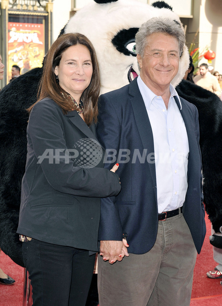 【11月10日 AFP】大ヒットアニメ映画『カンフー・パンダ(Kung Fu Panda)』のDVDリリースを記念したイベントが9日、米カリフォルニア(California)州ロサンゼルス(Los Angeles)で開催された。会場には、主人公のポーとともに、声優として参加した女優アンジェリーナ・ジョリー(Angelina Jolie)、俳優ダスティン・ホフマン(Dustin Hoffman)、ジャック・ブラック(Jack Black)らが登場した。(c)AFP/Getty Images