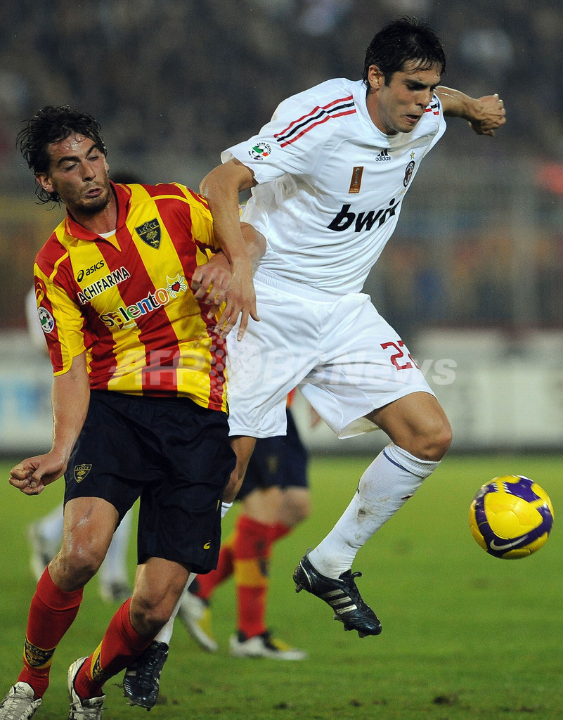スポーツ サッカー ミラン レッチェと引き分け連勝ストップ 2008年11月10日 9:24 発信地:レッチェ/イタリア [ ヨーロッパ イタリア ] このニュースをシェア ‹ › ❮ 1/12 ❯ レッチェのジャンニ・ムナリ(%%Gianni Munari%%、左)と競り合うACミランのカカ(%%Kaka%%)。(2008年11月9日撮影)(c)AFP/ALBERTO PIZZOLI 画像作成中 ! 【11月10日 AFP】08-09イタリア・セリエA第11節、レッチェ(US Lecce)対ACミラン(AC Milan)。試合は1-1の引き分けに終わり、ミランの連勝は4で止まった。(c)AFP サッカー 一覧へ> メディア・報道関係・法人の方向け 写真・動画 購入のお問合せ>