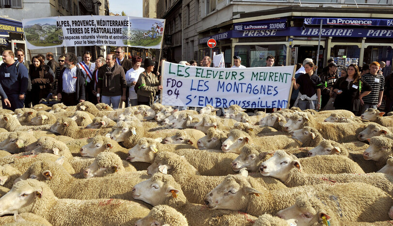 仏マルセイユの街頭に羊が2500頭、畜産家らが抗議デモ