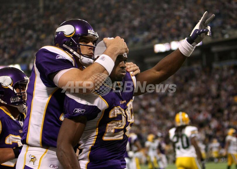 スポーツ アメリカンフットボール バイキングス パッカーズに1点差で競り勝つ 2008年11月10日 11:02 発信地:ミネアポリス/米国 [ 北米 米国 ] このニュースをシェア ‹ › ❮ 1/12 ❯ グリーンベイ・パッカーズ戦の第4クォーターに逆転となる29ヤードのタッチダウンランを決め、チームメイトのガス・ファーロット(%%Gus Frerotte%%、左)と共に歓喜するミネソタ・バイキングスのエイドリアン・ピーターソン(%%Adrian Peterson%%)。(2008年11月9日撮影)(c)AFP/Getty Images/Stephen Dunn 画像作成中 ! 【11月10日 AFP】08NFL・第10週、ミネソタ・バイキングス(Minnesota Vikings)対グリーンベイ・パッカーズ(Green Bay Packers)。試合はバイキングスが28-27でパッカーズとの接戦を制した。(c)AFP/Getty Images アメリカンフットボール 一覧へ> メディア・報道関係・法人の方向け 写真・動画 購入のお問合せ>