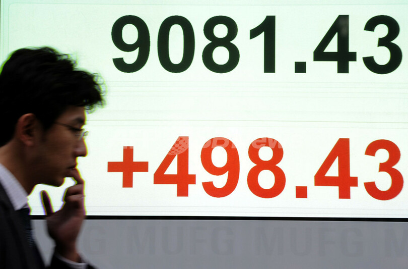 【11月10日 AFP】(一部更新)週明け10日の東京株式市場は、前週末の米株高や円安、中国が9日に発表した景気刺激策などを好感し、大幅反発。日経平均株価は、9000円台を回復し、前週末比498円43銭(5.81%)高の9081円42銭で引けた。午前終値は9053円90銭(同5.49%高)だった。