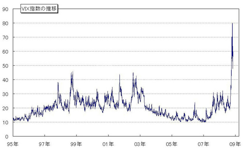 金融安定化策や各国中銀による潤沢な流動性供給を背景に金融システム不安は最悪期を脱し、パニック的な売りは一段落したものの、各国の実体経済が悪化する中、当面は、投資家のリスク回避姿勢が大きく減ずることはないと思われる。VIXインデックスは、ピークからは低下したものの、依然としてロシア危機やITバブル崩壊後の水準を上回っており、落ち着きを取り戻したと言うには程遠い状況だ。