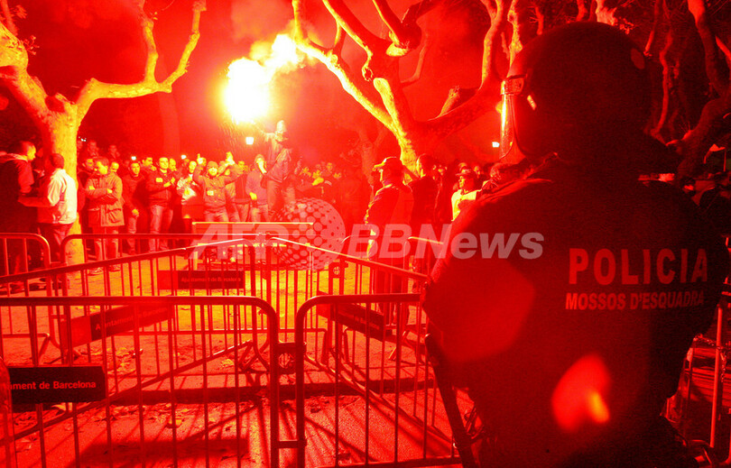 【11月13日 AFP】スペイン・バルセロナ(Barcelona)で11日、日産自動車(Nissan Motor)の現地工場の雇用削減に反対する従業員ら数百人が抗議でデモを行い、一部の参加者が日産オフィスの入っている建物に卵や看板を投げつけるなどして気勢をあげた。市内中心部の大通りも、デモ隊によって交通が遮断される事態となった。