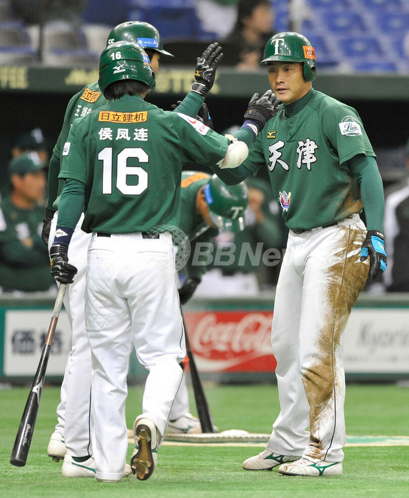 スポーツ 野球 統一セブンイレブンライオンズ 初戦をサヨナラで飾る、アジアシリーズ 2008年11月13日 15:16 発信地:東京 [ アジア・オセアニア 東京 ] このニュースをシェア ‹ › ❮ 14/18 ❯ 統一セブンイレブンライオンズ戦の2回表に張振旺(%%Zhang Zhen Wang%%、ジャン・ジェンワン)が放った2点適時二塁打で生還しチームメイトに迎えられる天津ライオンズの王靖超(%%Wang Jing Chao%%ワン・ジンチャオ、右)。(2008年11月13日撮影)(c)AFP/Toru YAMANAKA 画像作成中 ! 【11月13日 AFP】野球、アジアシリーズ2008(Asia Series 2008)第1試合、統一セブンイレブンライオンズ(Uni-President 7-Eleven Lions、台湾)対天津ライオンズ(Tianjin Lions、中国)。試合は統一セブンイレブンライオンズが7-4で天津ライオンズをサヨナラで下し、初戦を白星で飾った。(c)AFP 野球 一覧へ> メディア・報道関係・法人の方向け 写真・動画 購入のお問合せ>