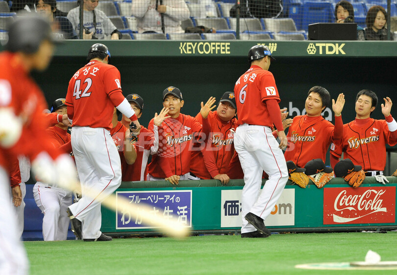 スポーツ 野球 SKワイバーンズ 7回コールドで2連勝、アジアシリーズ 2008年11月14日 14:30 発信地:東京 [ アジア・オセアニア 東京 ] このニュースをシェア ‹ › ❮ 4/6 ❯ 天津ライオンズ戦でチームの得点に歓喜するSKワイバーンズの選手たち 。(2008年11月14日撮影)(c)AFP/Toru YAMANAKA 画像作成中 ! 【11月14日 AFP】野球、アジアシリーズ2008(Asia Series 2008)第3試合、天津ライオンズ(Tianjin Lions、中国)対SKワイバーンズ(Sk Wyverns、韓国)。試合はSKワイバーンズが15-0で7回コールド勝ちを収め、2連勝を飾った。(c)AFP 野球 一覧へ> メディア・報道関係・法人の方向け 写真・動画 購入のお問合せ>