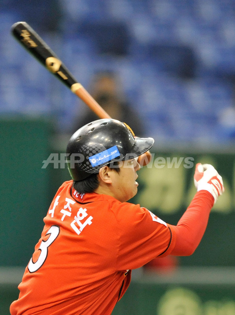 スポーツ 野球 SKワイバーンズ 7回コールドで2連勝、アジアシリーズ 2008年11月14日 14:30 発信地:東京 [ アジア・オセアニア 東京 ] このニュースをシェア ‹ › ❮ 2/6 ❯ 天津ライオンズ戦の3回表に2点適時打を放つSKワイバーンズの羅州煥(%%Na Ju-Hwan%%、ナ・ジュファン)。(2008年11月14日撮影)(c)AFP/Toru YAMANAKA 画像作成中 ! 【11月14日 AFP】野球、アジアシリーズ2008(Asia Series 2008)第3試合、天津ライオンズ(Tianjin Lions、中国)対SKワイバーンズ(Sk Wyverns、韓国)。試合はSKワイバーンズが15-0で7回コールド勝ちを収め、2連勝を飾った。(c)AFP 野球 一覧へ> メディア・報道関係・法人の方向け 写真・動画 購入のお問合せ>
