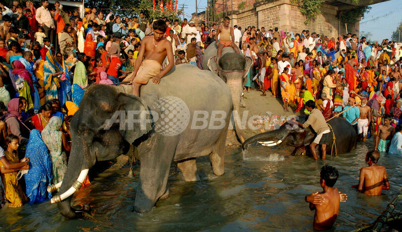 ニュース ライフ インドでアジア最大規模の家畜市、ゾウも沐浴 2008年11月15日 19:29 発信地:ソネプール/インド [ アジア・オセアニア インド ] このニュースをシェア インドのソネプール(Sonepur)で開催の家畜市で、沐浴するヒンズー教徒らといっしょに、川でゾウに水浴びをさせる象使い(2008年11月13日撮影)。(c)AFP/Deepak KUMAR 【11月15日 AFP】インドのソネプール(Sonepur)で、1か月にわたるアジア最大規模の家畜市が開催されている。この家畜市は、ガンジス(Ganges)川とガンダク(Gandak)川が合流するこの地で、毎年インド太陰暦の「Kartik」の月の「Purnima」の日に、ヒンズー教の儀式を合図に始まる。(c)AFP ライフ 一覧へ> メディア・報道関係・法人の方向け 写真・動画 購入のお問合せ>