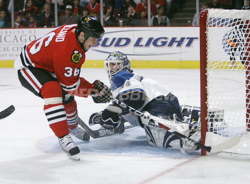 スポーツ ウインタースポーツ ブルース ブラックホークスを下し連敗脱出 2008年11月15日 17:23 発信地:シカゴ/米国 [ 北米 米国 ] このニュースをシェア ‹ › ❮ 2/2 ❯ セントルイス・ブルース戦でゴーリーのマニー・レガシー(%%Manny Legace%%)をかわして得点するシカゴ・ブラックホークスの%%Dave Bolland%%(左)。(2008年11月14日撮影)(c)AFP/Getty Images/Brian Kersey 画像作成中 ! 【11月15日 AFP】08-09NHL、シカゴ・ブラックホークス(Chicago Blackhawks)対セントルイス・ブルース(St. Louis Blues)。試合はオーバータイムの末にブルースが4-3で勝利し、連敗を6で止めた。(c)AFP/Getty Images ウインタースポーツ 一覧へ> メディア・報道関係・法人の方向け 写真・動画 購入のお問合せ>