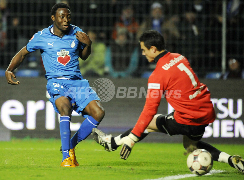 第12節を終えて2位につけるホッフェンハイムは、アウェーのボルフスブルクを相手に前半で2度も同点に追いつかれ苦戦を強いられたが、後半24分にチネドゥ・オバシ・オグブケ(Chinedu Obasi Ogbuke)が決勝のゴールを決めて勝利を収め、勝ち点を28に伸ばし2位を守った。(c)AFP/Ryland James