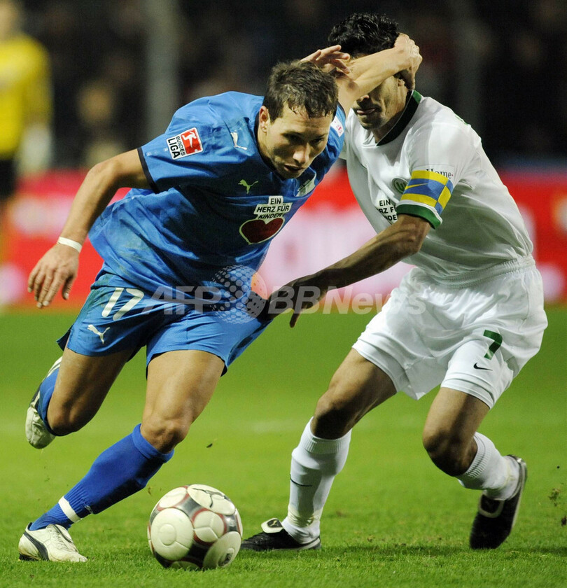 【11月16日 AFP】08-09ドイツ・ブンデスリーガ1部第13節、1899ホッフェンハイム(1899 Hoffenheim)対VfLボルフスブルク(VfL Wolfsburg)。試合は1899ホッフェンハイムが3-2でVfLボルフスブルグに競り勝った。