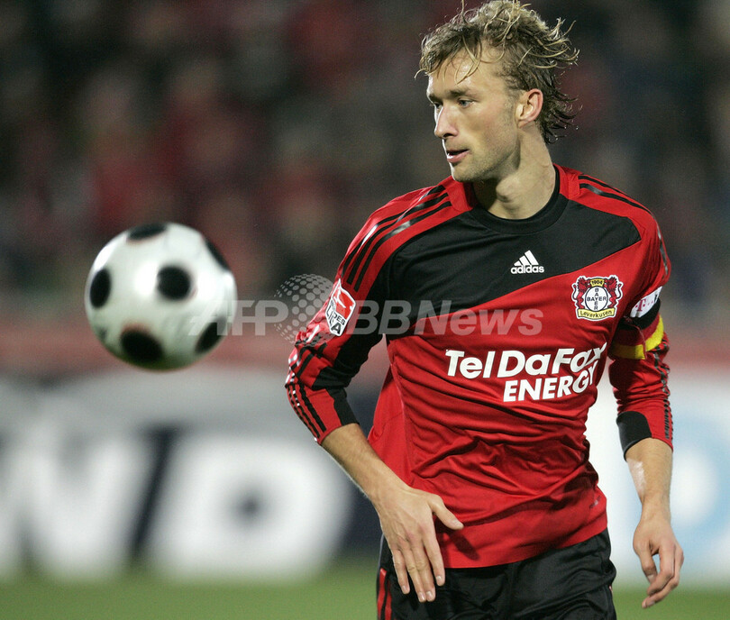 【11月16日 AFP】08-09ドイツ・ブンデスリーガ1部第13節、バイヤー・レバークーゼン(Bayer Leverkusen)対シャルケ04(Schalke04)。前半にパトリック・ヘルメス(Patrick Helmes)とステファン・キースリング(Stefan Kiessling)のゴールでリードを奪ったバイヤー・レバークーゼンは、後半22分にゴンサロ・カストロ(Gonzalo Castro)が2枚目のイエローカードを受け退場処分となり、同40分にはケヴィン・クラニー(Kevin Kuranyi)にゴールを奪われたが、2-1で勝利を収め首位を守った。(c)AFP/Ryland James